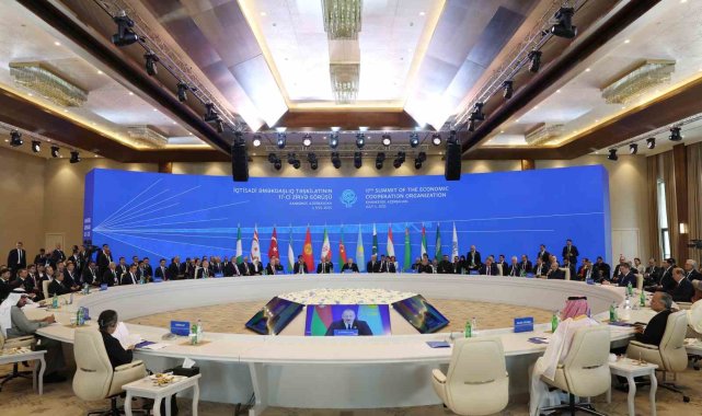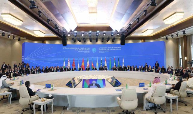 Cumhurbaşkanı Recep Tayyip Erdoğan'ın da katıldığı Ekonomik İşbirliği Teşkilatı (EİT) 17. Zirvesi, Azerbaycan'ın Hankendi şehrinde başladı.Ekonomik İşbirliği Teşkilatı (EİT) 17. Zirvesi, Cumhurbaşkanı Recep Tayyip Erdoğan'ın da katılımıyla Azerbaycan'ın Hankendi şehrinde başladı. Azerbaycan Cumhurbaşkanı İlham Aliyev'in ev sahipliğinde Hankendi Kongre Merkezi'nde düzenlenen zirve öncesi liderler, aile fotoğrafı için bir araya geldi. Cumhurbaşkanı Erdoğan, zirvenin düzenlendiği alana gelişinde, Aliyev tarafından karşılandı. Çekilen aile fotoğrafında Cumhurbaşkanı Erdoğan ve Aliyev'in yanı sıra İran Cumhurbaşkanı Mesud Pezeşkiyan, Özbekistan Cumhurbaşkanı Şevket Mirziyoyev, Kırgızistan Cumhurbaşkanı Sadır Caparov, Tacikistan Cumhurbaşkanı İmamali Rahman, Pakistan Başbakanı Şahbaz Şerif ve KKTC Cumhurbaşkanı Ersin Tatar da yer aldı.Kazakistan Başbakanı Oljas Bektenov, Afganistan geçici hükûmeti Başbakan Yardımcısı Molla Abdulgani Birader, Türkmenistan Başbakan Yardımcısı ve Dışişleri Bakanı Raşid Meredov, Birleşik Arap Emirlikleri (BAE) Endüstri ve İleri Teknoloji Bakanı Sultan el-Cabir, Türk Devletleri Teşkilatı (TDT) Genel Sekreteri Kubanıçbek Ömüraliyev ve EİT Genel Sekreteri Asad Majeed Khan da aile fotoğrafı çekilirken hazır bulundu.Fotoğraf çekiminin ardından liderler, "Sürdürülebilir ve İklim Değişikliğine Dayanıklı bir Gelecek için Yeni Ekonomik İşbirliği Teşkilatı Vizyonu" temalı zirvenin yapılacağı salona geçti. Zirvenin Karabağ'da bir dönem işgalci rejimin başkent olarak kullandığı Hankendi'de yapılması, Azerbaycan için sembolik önem taşıyor.Ekonomik İşbirliği TeşkilatıTürkiye, İran, Pakistan devlet ve hükûmet başkanlarının bölgesel ekonomik iş birliğini geliştirmek amacıyla 1964'te İstanbul'da bir araya gelerek yayımladıkları bildiriyle kurulan Kalkınma için Bölgesel İşbirliği (RCD) platformunun devamı niteliğinde olan EİT, 1979'da İran'da yapılan devrim sonrasında faaliyetlerini askıya almak durumunda kalmıştı. Üç ülke arasındaki ekonomik ilişkilerin 1980'li yılların başında yeniden gelişmeye başlamasıyla iş birliğinin RCD'nin hukuki zemini üzerinde ama farklı bir isim altında sürdürülmesi kararı alınmıştı. EİT'in temeli böylece 1985'te atılmıştı. Türkiye, Pakistan, İran, Afganistan, Azerbaycan, Özbekistan, Kazakistan, Kırgızistan, Tacikistan ve Türkmenistan'ın üye, KKTC'nin ise gözlemci üye olduğu EİT'in devlet başkanları zirvesi 2 yılda bir düzenleniyor.Teşkilat, zirve ve dışişleri bakanları düzeyindeki dönemsel toplantıların yanı sıra ticaret, ulaştırma, tarım, enerji, çevre, sağlık, sanayi, maliye ve ekonomi bakanlarıyla düzenli toplantılar yaparak sektörel bazda alınan kararlar ve iş birliği projelerinin hayata geçirilmesine imkân sağlıyor.