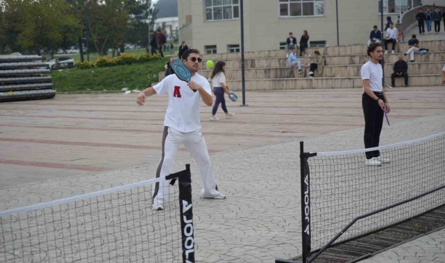 Ondokuz Mayıs Üniversitesi (OMÜ) Bağımlılıkla Mücadele Uygulama ve Araştırma Merkezi tarafından teknoloji bağımlılığına karşı farkındalık oluşturmak amacıyla "Ekranı Bırak, Raketi Kap" etkinliğini gerçekleştirildi.Gençler arasında artan dijital ekran kullanımının fiziksel, sosyal ve psikolojik etkilerine dikkat çekmek ve sağlıklı yaşam alışkanlıklarını teşvik etmek amacıyla düzenlenen etkinlikte, üniversite öğrencileri OMÜ Yaşam Merkezi'nde pickleball oynadı.Proje hakkında bilgi veren Bağımlılıkla Mücadele Uygulama ve Araştırma Merkezi Müdürü Dr. Öğr. Üyesi Alaattin Altın, "Seçmeli ders kapsamında 'teknoloji bağımlılığı' dersimiz var. Seçmeli dersimizi normalde sınıflarda işliyorduk. Bugün sahaya çıkalım dedik. Telefonlarımızı bırakalım ve sahada pickleball etkinliği ile birlikte arkadaşlarımızı sahaya yönlendirdik. Buradaki temel amacımız öğrencilerimiz hem sosyal hem fiziksel hem de psikolojik olarak sağlamlıklarını koruması ve ekrana maruz kalma sürelerinin azaltılmasıdır. Ekrana maruz kalma süresi arttığında bağımlılıklar ve başka psikolojik sorunlar meydana geliyor. Öğrencilerimize mesajımız şu: Üniversitemizin etkinliklerini, şehrimizin desteklerini kullanmalarıdır" dedi.Pickleball Samsun Derneği Başkanı Semih Üzer ise "3 yaşındaki çocuktan 70 yaşındaki kişinin oynayabileceği bir spor. Hemen hemen herkes bu sporu çok kolay yapıyor. Tüm üniversite topluluklarını ve üniversite halkını bu anlamda spor yapmaya davet ediyoruz" diye konuştu.