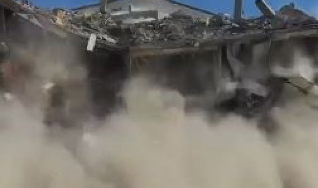 Elazığ'da ağır hasarlı bina tek dokunuşla yıkıldı