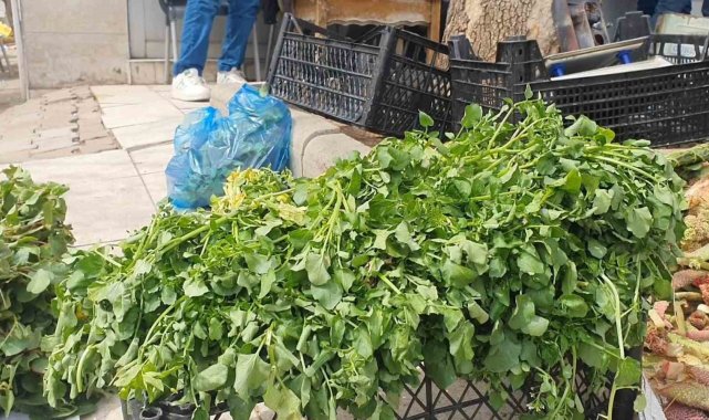 Baharın gelmesiyle birlikte Elazığ'ın Palu ilçesinde ışkın, su teresi ve kuzu kulağı tezgahlardaki yerini aldı.