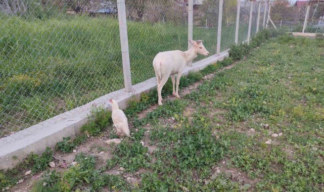 Elazığ'da beyaz alageyik evin bahçesine indi