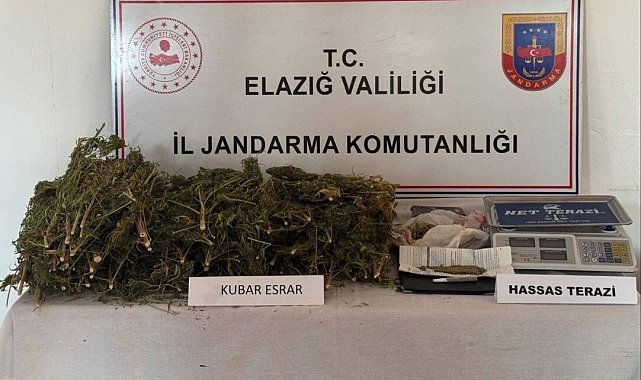 Elazığ'da jandarmanın bir eve düzenlediği operasyonda 3 kilo 200 gram esrar maddesi ele geçirildi, 1 şüpheli gözaltına alındı.Elazığ Cumhuriyet Başsavcılığı koordinesinde, Elazığ İl Jandarma Komutanlığı, Gezin Jandarma Karakol Komutanlığı, İstihbarat ve KOM Şube Müdürlüğü ekiplerince yapılan istihbari çalışmalar neticesinde, Tekevler köyü Çörekli mezrası mevkiinde Ş.A. isimli şahsa ait adreste arama yapıldı. Aramada, 3 kilo 200 gram kubar esrar, 1 hassas terazi ele geçirildi. 1 şüpheli hakkında adli tahkikata başlandığı belirtildi.