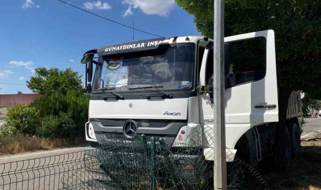 Elazığ'da seyir halindeyken lastiğinin patlaması sonucu kontrolden çıkan kamyon, yol kenarındaki tel örgülere çarparak durabildi. Yaşananlar güvenlik kameralarına yansıdı.