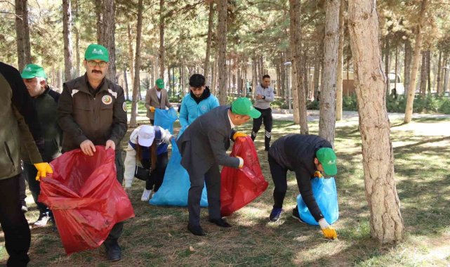 Elazığ'da 'Ormanlar İçin El Ele' projesi çerçevesinde, mesire alanındaki çöpler toplandı.