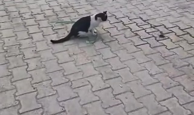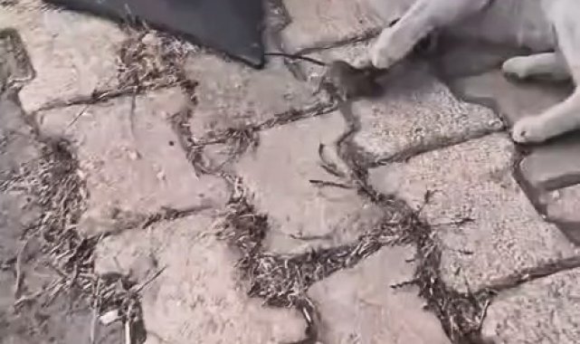 Elazığ'da bir kedinin yakaladığı fareyle uzun süre oynadığı anlar kameraya yansıdı. O anlar, 'kedinin fareyle oynadığı gibi oynamak' deyimini akla getirdi.