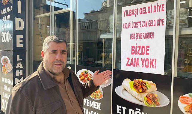 Elazığ'daki bir esnaf dükkanının girişine 'Yılbaşı ve asgari ücrete zam geldi diye her şeye rağmen bizde zam yok' yazısı asarak, zam ve fahiş fiyat uygulayan kesime karşı tavrını korudu.Yeni yılda asgari ücret 22 bin 104 TL olarak belirlendi. Bazı kesimler yılbaşı ve asgari ücretteki artışı fırsat bilerek fahiş fiyat uygularken Elazığ'da lokantası bulunan Murat Karatapan ise örnek bir davranış sergiledi. İş yerinin girişine, 'Yılbaşı ve asgari ücrete zam geldi diye her şeye rağmen bizde zam yok' yazısı asan Karatapan, yapılan zamlara karşı lokantasındaki yemek fiyatlarını 2024 listesi ile aynı tutarak, zam ve fahiş fiyat uygulayan kesime karşı tavrını korudu. Karatapan aynı zamanda iş yerinde boykot ürünlerini de satmadığını ifade etti.30 yıldır lokanta sektöründe olduğunu dile getiren Esnaf Murat Karatapan, "Lokanta sektörüne ilk önce Palu merkezde başladım. 12 yıl Palu'da bu mesleği yaptıktan sonra yaklaşık, 17 yıldır Elazığ merkezdeyim. 10 yıldır bu dükkandayım. 10 yıl boyunca burada, günümüz enflasyon seviyesinin yüksek oluşu nedeniyle, mümkün olduğu kadarıyla fiyatlarımızı makul şekilde tutmaya gayret ettik. Bu senede 2024 yılı Ramazan ayından çıktıktan sonra fiyat uygulaması yaptık. Bu fiyat uygulamasından sonra, bu günümüze kadar aynı fiyatlarla devam ediyoruz. Gördüğünüz bu yazıyı da yılbaşı nedeniyle ve asgari ücrete yapılan zamma rağmen halen bir zam uygulamadım. Fiyatlarım geçen seneyle aynı devam ediyor. Belirli bir süre bu böyle devam edecektir. Bayramdan sonraya kadar inşallah bu fiyatlarla devam edeceğiz. Ben kendi lokantamda boykot ürünlerini satmıyorum. 7 Ekim'den bugüne kadar mümkün olduğu kadarıyla kullanmamaya dikkat ediyorum. Lokantaya gelen öğrencilere bazı indirimler uyguluyoruz. Su veya ayran ücretine ya da fiyatta yardımcı oluyoruz. Mutlaka öğrencilere indirim yapıyoruz" dedi.