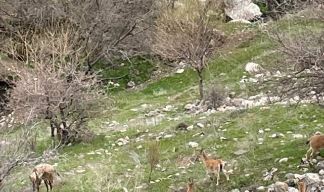 Elazığ'ın tarihi yerleşimlerinden Harput Mahallesi'nde dağ keçileri görüntülendi.Elazığ'ın Harput Mahallesi'ndeki kayalık alanlarda ortaya çıkan dağ keçileri, vatandaşların dikkatini çekti. Tarihi dokusuyla bilinen Harput'ta sürü halinde görüntülenen dağ keçileri, kısa sürede gözden kayboldu.O anlara tanıklık eden vatandaşlar, cep telefonlarıyla o anları görüntüledi.