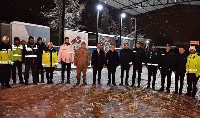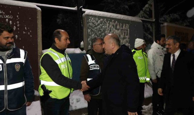 Elazığ protokolü vatandaşların yeni yıla huzur ve güven içerinde girebilmesi için görevi başında olan güvenlik güçleriyle bir araya geldi.Elazığ'da yılbaşı gecesi etkisini artıran yoğun kar yağışı, buzlanma ve dondurucu soğuk havaya rağmen, vatandaşların yeni yıla huzur ve güven içerisinde girebilmesi için Emniyet Müdürlüğü ve Jandarma Komutanlığı ekipleri çalışmalarını sürdürüyor. Vali Numan Hatipoğlu, AK Parti Elazığ Milletvekili Prof. Dr. Erol Keleş, Belediye Başkanı Şahin Şerifoğulları ve beraberindeki heyet Bingöl yolu ve Gülüşkür uygulama noktalarındaki görevli personel ile bir araya geldi. Çalışmalar ve son durum hakkında bilgi alan il protokolü, aynı zamanda hem güvenlik güçlerinin hem de seyahat eden vatanların yeni yılını kutladı.