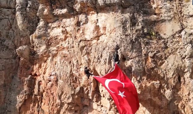 Elazığlı dağcılar kayalıklarda Türk bayrağı açtı