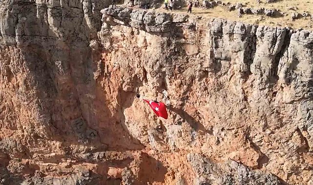 Elazığlı dağcılar, 29 Ekim Cumhuriyet Bayramı kutlamaları çerçevesinde Balkayası kayalıklarında Türk Bayrağı açtı.Elazığ'da 29 Ekim Cumhuriyet Bayramı kutlamaları sürüyor. Bu çerçevede Elazığ Doğa Sporları Spor Kulübü ve Ağın Kaymakamlığı ortak bir etkinlik düzenledi. Bu çerçevede 7 profesyonel dağcı Balkayası kayalıklarından halatlı iniş yaparak Türk Bayrağını dalgalandırdı. O anlar dron ile kaydedildi.