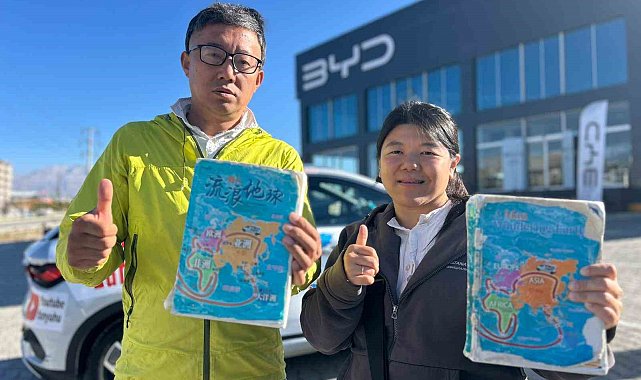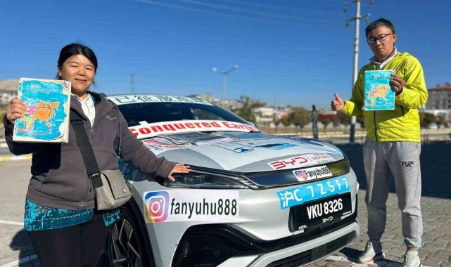 Çinli gezgin çift, elektrikli araçla gerçekleştirdikleri dünya turu kapsamında Van'a ulaştı.