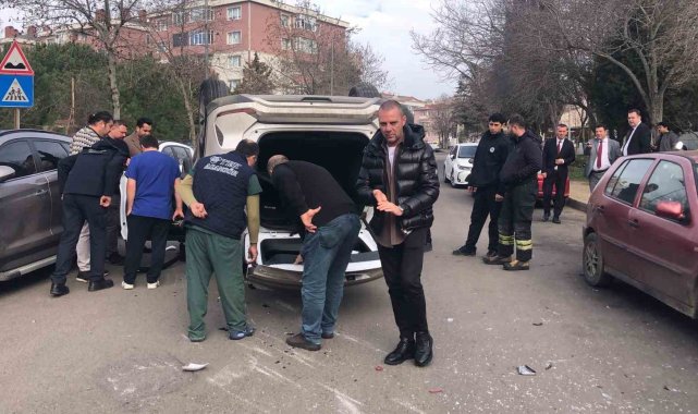 Tekirdağ Çorlu'da hafif ticari araçla çarpışan elektrikli otomobilin takla attığı anlar kameraya yansıdı. Kazada Çorlu eski Belediye Başkan Yardımcısı Veysel Tunçcan, emniyet kemeri sayesinde kazadan yara almadan kurtuldu.