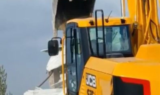 Antalya'da hazine arazisi üzerine kaçak yapılan 21 yapı yıkıldı. Gergin anların yaşandığı yıkımda eline aldığı orakla evin çatısına çıkan vatandaş, ekiplere zor anlar yaşattı.