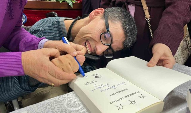 Aydın'ın Efeler ilçesinde, doğumda beyni oksijensiz kaldığı için 'serebral palsi' hastalığı nedeniyle ellerini ve ayaklarını kullanamayan 44 yaşındaki Mustafa Erol, 5 yıl süren bir çalışmanın ardından burnunu kullanarak ikinci kitabı 'Beynimdeki Yıldızlar'ı tamamladı.2009 yılında yazma yolculuğuna başlayan Erol, ilk kitabı 'Herkes Beni Engelli Sanıyo'yu 7 yılda tamamlamıştı. Kitaplarıyla dikkat çeken Erol, Aydın Adnan Menderes Üniversitesi Edebiyat Fakültesi'nde yüksek lisans eğitimini de başarıyla tamamladı. İkinci kitabı 'Beynimdeki Yıldızlar'ı 5 yılda yazan Erol, 328 sayfalık romanını tamamlayarak bin baskı yaptı. Kitap, okurlardan büyük ilgi gördü. Erol, kitabını tanıtmak amacıyla Aydın İl Halk Kütüphanesi'nde bir imza günü düzenledi. Törende, hayranları ve okuyucuları ile buluşarak kitaplarını imzalayan Erol, azmi ve kararlılığıyla büyük takdir topladı."Mustafa çok zeki bir çocuk"Zor doğum sonucu beyninin oksijensiz kalması sonucu oğlunun elini ve kolunu kullanamadığını belirten anne Hatice Erol, Mustafa'nın çok zeki bir çocuk olduğunu okumayı evde öğrendiğini, ilkokul, ortaokul, liseyi ve üniversiteyi dışardan bitirdiğini söyledi. Aydın Adnan Menderes Üniversitesi Türk Dili ve Edebiyatı bölümünde yüksek lisansını yapan oğlunun çok kitap okuduğunu belirten anne Erol, "İlk kitabı 'Herkes Beni Engelli Sanıyo'ya hayatını yazdı. Daha sonra ikinci kitabına başladı. Beş yılda bu kitabı yazdı. Yazması öyle kolay olmadı. Burnu ile her harfi bastıktan sonra ekrana bakıp doğru olup olmadığını kontrol etti. Bu kitabı tam 328 sayfa. Gece ikilere kadar kitabı yazmak için çalıştı yorulduğunda kitap okuyup beynini dinlendirdi. Tabi o süreçte bir de tezini yazdı. Tezini de kitaplaştıracağız inşallah. Oğlumla gurur duyuyorum" dedi.Erol, kitap baskıdan geldiğinde Mustafa sevinçten gözyaşlarını tutamadığını söyledi."Başarmak için vazgeçmemek gerekiyor"Mustafa Erol'un imza törenine kendisine yazmayı öğreten İngilizce Öğretmeni Gülümsün Güneş de katıldı. Güneş, Mustafa'nın yazmayı nasıl öğrendiğini ve azmini anlattı. Güneş, "Mustafa, gazeteci Selahattin Duman çok seviyordu onun yazılarını okuyordu. Bana dedi ki ona bir mektup yazar mısın? Ben yazamam dedim. Senin yazman gerekiyor, senin duygularını senin kağıda geçirmen gerekiyor dedim. Bunun üzerine yazı yazma çalışmalarına başladık. Yaklaşık iki ay hiç kalem tutamadı. Kalemleri yere attı, sinirlendi. Bayağı sıkıntılı bir dönemin ardından 4 ay sonra yuvarlak çizmeye başladı. 7 ayın sonunda artık mektubu yazmayı başardı. Mustafa çok azimli bir çocuk. Çok çabaladı vazgeçmedi. Ben Mustafa'dan vazgeçmemeyi öğrendim. Yani başarmak için vazgeçmemenin gerekli olduğuna inanan bir insan Mustafa" diye konuştu.Kendi çabasıyla başarıdan başarıya Mustafa'nın koştuğunu kaydeden Güneş, "Bugün de yeni kitabının tanıtımına katıldık. Bu kitabı merakla aldım ve okuyacağım. Hatta yorumumu da kendisine ileteceğim" dedi.Kitabını 5 yılda tamamladığını ve çok mutlu olduğunu belirten Mustafa Erol ise, hedefinin ünlü bir yazar olmak olduğunu kaydetti.