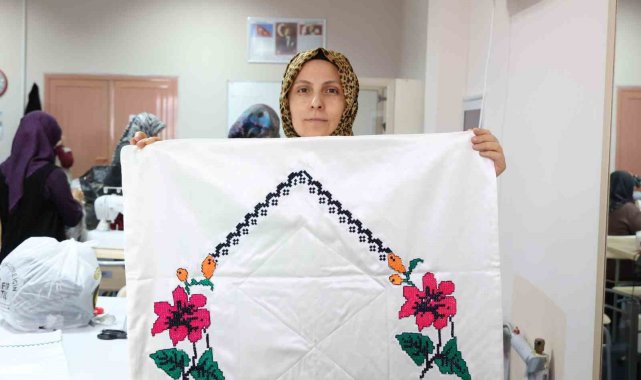 Antalya Büyükşehir Belediyesi Atatürk Sanat Eğitim Merkezleri'nde (ATASEM), ücretsiz meslek ve sanat kursları ile kadınlar hem sosyalleşiyor hem de el emeği ürünleriyle aile ekonomilerine katkı sağlıyor.ATASEM meslek kursları ile kadınların üretime olan katkılarını arttıran Büyükşehir Belediyesi ev ekonomilerine de destek sağlıyor. Antalya genelinde faaliyet gösteren ATASEM Merkezlerinde el becerisi gerektiren birbirinden farklı kurslara katılan kadınlar hem özgüven kazanıyor hem de üreterek kazanıyor. Hediyelik eşya, takı tasarımı, saç bakımı ve dikiş-nakış gibi onlarca kursta eğitim alan kadınlar, öğrendiklerini üretime dönüştürerek satış yapabiliyor. Elmalı Büyükşehir Belediyesi Hizmet Biriminde yer alan ATASEM Dikiş Atölyesinde eğitim alan kursiyer kadınlar da kadının gücünü el emeği ürünleriyle gösteriyor. Kursiyer kadınlar her evin ihtiyacı olan çarşaf, yorgan kılıfı, yastık, pike, perde gibi birçok ürünü atölyede üretiyor. Çevrelerinden gelen talepleri ve çeyizlik siparişleri de yapan kadınlar sattıkları ürünlerden gelir elde ederken sosyalleşme imkânı da sağlayan kurslara yoğun ilgi gösteriyor."Ev ekonomisine katkı sağlıyorlar"Dikiş Atölyesindeki faaliyetlerle ilgili bilgi veren ATASEM Elmalı Dikiş Atölyesi Usta Öğreticisi Hatice Tekeli, "Kadınlarımız burada kurslarımıza katılarak yeni teknikler öğrenerek, el emeği ürünlerini üreterek dikiş işlerini yapabiliyorlar. Burada çocuklarının çeyizinden torunlarının kıyafetine, pike takımları, nevresim takımları, tel kırma, çanta örme gibi her türlü tekniği öğrenerek üretim yapıyorlar. Birçok imkân atölyemizde mevcut. Bu makinaların kullanımını ve farklı özelliklerini öğrenen kursiyerlerimiz ürün çeşitliliğini de arttırabiliyor. Maddi imkânı sınırlı olan kursiyerlerimizde burada ürettikleri ürünlerden dışarıya iş yaparak kazanç elde edebiliyorlar" dedi.