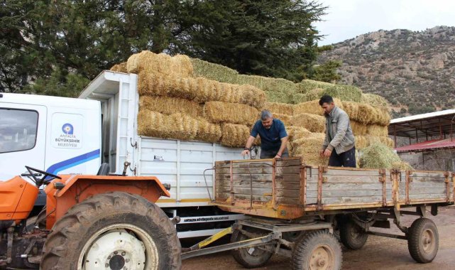 Elmalı Yuva'da saman desteği afetzedelerin yüzünü güldürdü