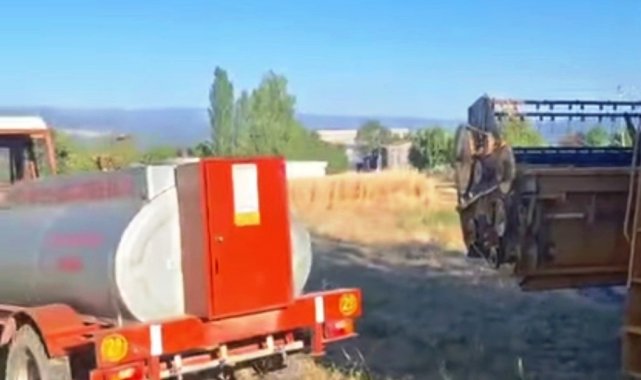 Kütahya'nın Emet ilçesi Yeniceköy'de biçerdöverde çıkan yangın, köy muhtarlığının su tankeri ile söndürüldü.