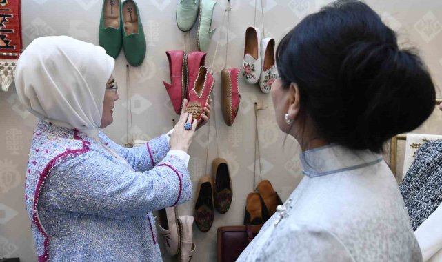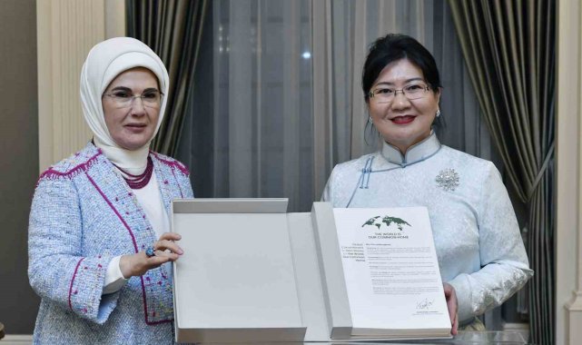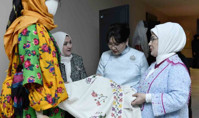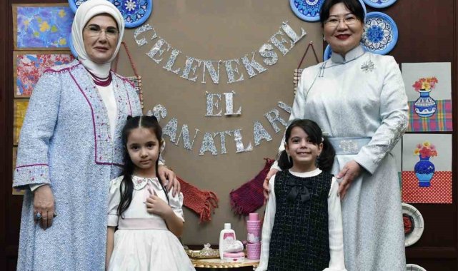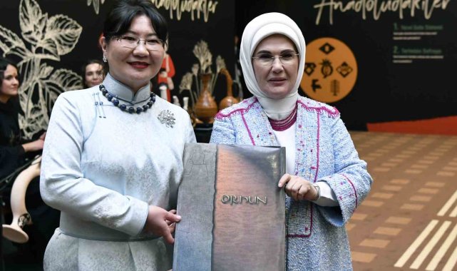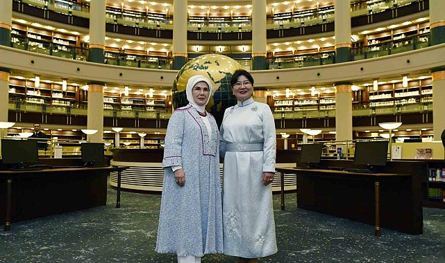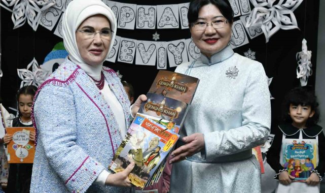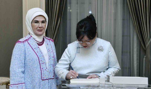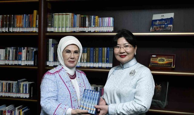 Cumhurbaşkanı Recep Tayyip Erdoğan'ın eşi Emine Erdoğan, Türkiye'ye resmi ziyarette bulunan Moğolistan Cumhurbaşkanı Khurelsukh Ukhnaa'nın eşi Bolortsetseg Luvsandorj ile bir araya geldi.Emine Erdoğan, Bolortsetseg Luvsandorj ile Cumhurbaşkanlığı Millet Kütüphanesi'ni ziyaret etti. Emine Erdoğan, Luvsandorj'u kütüphanenin girişinde samimi bir şekilde karşıladı. İkili, ilk olarak Cihannüma Salonu'na geçti. Kütüphanenin Moğolistan bölümündeki kitapları inceleyen lider eşleri, burada fotoğraf çektirdi.Emine Erdoğan, Luvsandorj'a Ahmet Hamdi Tanpınar'ın Moğolca'ya çevrilen "Saatleri Ayarlama Enstitüsü" ile Mevlana'nın "Mesnevi" eserinin İngilizce tercümesini, Luvsandorj da Emine Erdoğan'a Moğolistan kültürünü yansıtan plak ve kitaplar armağan etti.Çocuklar, ebru sanatıyla yaptıkları lale figürlü eserleri hediye ettiNasreddin Hoca Çocuk Kütüphanesi'ne geçen lider eşlerini, Cumhurbaşkanlığı kreşindeki çocuklar karşıladı. Emine Erdoğan ve Luvsandorj, burada çocukların geleneksel el sanatları çalışmalarını inceledi. Çocuklar, ebru sanatıyla yaptıkları lale figürlü eserleri Emine Erdoğan ve Luvsandorj'a hediye etti. Hediyeleri alan lider eşleri, çocuklara teşekkür etti, hatıra fotoğrafı çektirdi."Anadoludakiler" sergisine ziyaretDaha sonra lider eşleri, Emine Erdoğan'ın himayesinde Sanayi ve Teknoloji Bakanlığı tarafından "Anadolu'daki Bereket, Birikim ve Beceri" sloganıyla hayata geçirilen "Anadoludakiler" sergisini ziyaret etti.Sergide yer alan Ankara bindallı, Trakya gelin ve Erzincan gelin gibi yöresel kıyafetleri yakından inceleyen Emine Erdoğan ve Luvsandorj, kullanılan kumaş ve motiflere ilişkin bilgi aldı. Kumda pişirilen Türk kahvesi içen lider eşleri, salep ve leblebi tattı.Pamuklu dokuma üzerine tahta baskıyı deneyimleyen Emine Erdoğan ve Luvsandorj, ipek kumaş üzerine çeşitli ağaç yaprakları kullanılarak yapılan ekolojik baskı tekniğine ilişkin bilgi aldı, tekniğin uygulanma şeklini gördü.Anadolu'nun gıda ve tekstil gibi çeşitli alanlardan kültürel mirasını gözler önüne seren sergi, 31 Ocak'a kadar ziyaret edilebilecek.Luvsandorj, "Küresel Sıfır Atık İyi Niyet Beyanı"nı imzaladıEmine Erdoğan ve Luvsandorj, serginin ardından Ankara Olgunlaşma Enstitüsünce hazırlanan ve Ankara keçisi tiftiğinden üretilen sof kumaşlarıyla dikilmiş kıyafetlerin sergilendiği "Sof Kumaşı Defilesi"ni izledi.Defile sırasında Olgunlaşma Enstitüsü yetkilileri sof kumaşı ve defileye ilişkin bilgi verdi. Program sonrası Luvsandorj, ilk imzacısı Cumhurbaşkanı Erdoğan olan "Küresel Sıfır Atık İyi Niyet Beyanı"nı imzaladı."Bu ziyaretler, ülkelerimiz arasındaki dostluk köprülerini güçlendirecek"Emine Erdoğan, programın ardından sosyal medya hesabından yaptığı paylaşımda, şunları ifade etti:"Resmi ziyaret kapsamında ülkemizde bulunan Moğolistan Devlet Başkanının değerli eşi Bolortsetseg Luvsandorj Hanımefendi ile Cumhurbaşkanlığı Millet Kütüphanesi'nde bir araya gelmekten memnuniyet duydum. Ülkemizin dünyaya açılan kapısı kütüphanemizi tanıtma ve Moğolistan kitaplığındaki nadide eserleri inceleme fırsatı bulduk. Ankara Olgunlaşma Enstitümüz tarafından üretilen Anadolu'nun zarafetini ve tarihini taşıyan Sof Kumaşı Defilesi ile geleneksel dokumalarımızın güzelliğine birlikte tanıklık ettik. Ardından Anadoludakiler sergimizi gezerek geçmişten geleceğe taşınan bilgi, birikim ve beceriyi paylaştık. Gönülden inanıyorum ki kültür ve sanatla harmanlanan bu ziyaretler, ülkelerimiz arasındaki dostluk köprülerini daha da güçlendirecek."