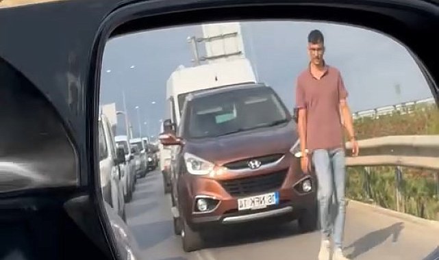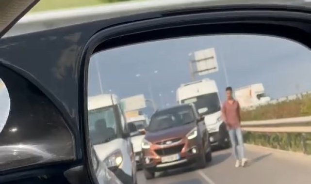 Bursa'da emniyet şeridini ihlal eden otomobillere ders vermek isteyen bir vatandaş, trafik üstünlüğü olan araçların kullanması gereken şeritten yürüyerek bütün kural tanımazları cezalandırdı.Görüntüler, İstanbul-İzmir otobanında kayda alındı. Bursa'nın merkezinden de geçen otobanda, akşam saatlerinde yaşanan trafik yoğunluğunda bazı kural tanımazlar, trafik üstünlüğü olan araçların kullanması gereken şeridi ihlal etti. Bunu gören bir vatandaş ise, bulunduğu araçtan inerek emniyet şeridinden yürümeye başladı. Trafik ihlali yapanları unutamayacakları bir ders veren yaya, sosyal medyada 'adam gibi adam' olarak ilan edildi.Emniyet şeridinin adaletini sağlayan vatandaşı önünde görenler ise, hiçbir tepki gösteremeden yeniden normal şeridine dönmek için girişimde bulundu.