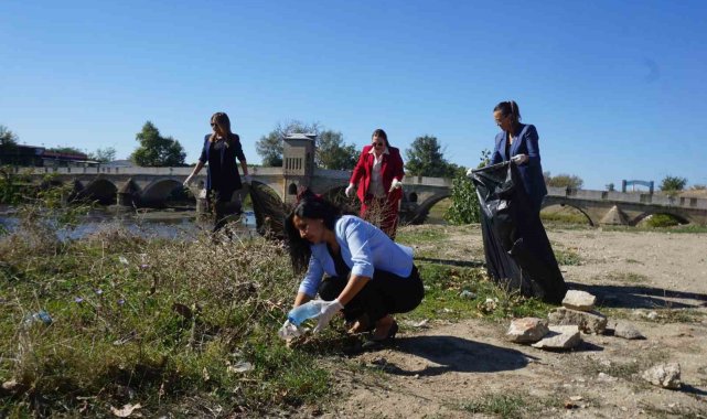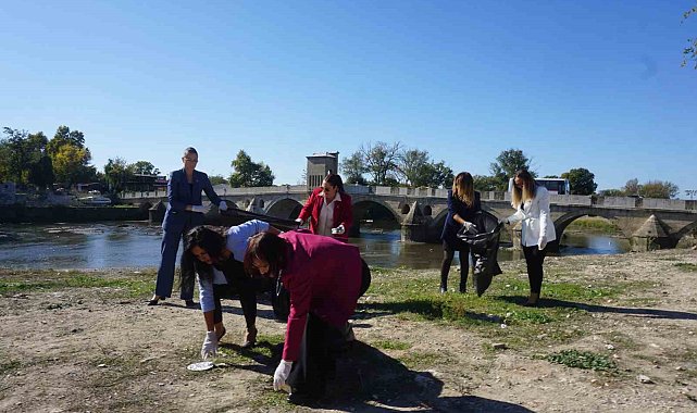Edirne'de temiz bir çevre için el ele veren kadın muhtarlar, en özel günlerinde en güzel kıyafetleriyle çöp toplama etkinliği gerçekleştirdi.Edirne'de 19 Ekim Muhtarlar Günü dolayısıyla düzenlenen tören ve kutlamalar sonrası örnek bir davranış sergileyen kadın muhtarlar, temiz bir çevre için kolları sıvadı. Göreve geldikleri günden bu yana mahallerini güzelleştirmek için çabalayan kadın muhtarlar, bu kez temiz bir çevre için harekete geçti.Sık sık kirlilikle gündeme gelen Tunca Nehri çevresinde bir araya gelen kadın muhtarlar, takım elbiseleri ve topuklu ayakkabıları ile temizlik yaparak farkındalık oluşturdu.Eldivenler takıldı, temiz bir çevre için kollar sıvandıEldivenleri takıp temiz bir çevre için kolları sıvayan kadın muhtarlar, nehir kenarına atılan plastik atıklar, cam şişeler, sigara izmaritleri gibi çevre kirliliğine sebep olan çöpleri poşetlere doldurarak ekiplerin gelmesini bekledi.Bu önemli ve anlamlı günlerine bir anlam daha katmak istediklerini söyleyen Edirne Merkez Cumhuriyet Mahallesi Muhtarı Selma Oluçay, kadın muhtarlar olarak bir farkındalık oluşturmak istediklerini ve Tunca Nehri kenarında temizlik etkinliği düzenlediklerini belirtti.Topuklu ayakkabıları ve takım elbiseleri ile temizlik yaparak dikkat çekmek istediklerini belirten Oluçay, vatandaşlara çevreyi kirletmemeleri konusunda çağrıda bulundu.Temiz çevre için duyarlılık çağrısıBugün kendileri için bayram günü olduğunu ve düzenlenen törenler sonrası farkındalık oluşturmak için çöp toplamaya geldiklerini belirten Yeniimaret Muhtarı Neslihan Dönmez Dürüktaş, temiz bir çevre için vatandaşlara seslenerek duyarlılık çağrısında bulundu.Medrese Alibey Mahallesi Muhtarı Nesrin Günay, kadın muhtarlar olarak bir ilke imza atarak örnek olmak istediklerini söyledi.Atatürk Mahallesi Muhtarı Gülden Akman Yılmaz, topuklu ayakkabı ve takım elbiselerle örnek olmak için çöp toplamaya geldiklerini aktardı.Çevre kirliliğinin önüne geçmek ve bu konuda farkındalık oluşturmak amacıyla bu şekilde bir etkinlik düzenlemek istediklerini söyleyen Kurtuluş Mahallesi Muhtarı Nurcan Uzel, vatandaşlara örnek olmak amacıyla eldivenlerini takıp çevre temizliği yaptıklarını belirtti.
