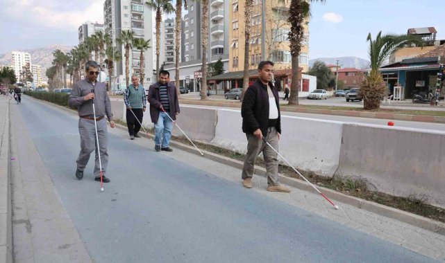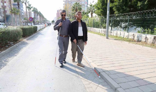 Adana'da doğuştan görme engelli Ahmet Ünal, 2 yıl önce görme yetisini yitiren Adem Kılınç'a beyaz baston eğitimi vererek sokakta yürümesini sağladı.