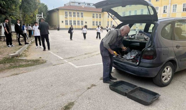 Eskişehir'de lisede okuyan 15 yaşındaki zihinsel engelli torununu yalnız bırakmak istemeyen 80 yaşındaki dede, hem onu gözetlemek hem de eğitime katkıda bulunmak amacıyla okulda gönüllü görevli oldu.Otizm ile dikkat eksikliği/hiperaktivite bozukluğu (DEHB) bulunan Burak Tangül (15), Ahi Evran Mesleki ve Teknik Anadolu Lisesi'nde 10'uncu sınıfa gidiyor. Tangül, karma sistem ile eğitim görürken demiryolundan emekli olan dedesi Mehmet Coşkunlar, torununun gittiği lisede okul aile birliği başkanlığı yapıyor. Torununu bir an olsun yalnız bırakmak istemeyen 80 yaşındaki dede, ayrıca hiçbir ücret almadan okula gönüllü olarak hizmet sağlayıp arızaları ve eksikleri kendi çabalarıyla gideriyor. Gün içerisinde sıkça torununun yanına giderek onu kontrol de eden hayırsever dede, bulunduğu okulda yaklaşık 800 öğrencinin daha sevgisini ve saygısını topluyor."Ben buraya bir torunumu getirdim ama şu an 800 torunum var"Dede Mehmet Coşkunlar, "Okul aile birliği başkanıyım. Okulun içini geziyorum ve nerelerde bir arıza varsa veya bana söylerlerse ilgileniyorum. Çeşme bozulduysa tamir ediyorum. Eğer tamir edilecek bir durumu yoksa gidip yenisini alıyorum, getiriyorum. Ondan sonra okul aile birliğinden bana parasını veriyorlar. Ben buraya bir torunumu getirdim ama şu an 800 torunum var, hatta bine yakın" dedi."Eski masaları toparlıyorum, biraz sağlam olanları daha da sağlamlaştırıyorum"Coşkunlar, "Mesela üst kattaki camların hepsine emniyet kilidi taktım lambalar ve prizler bozuluyor, onları tamir ediyorum. Alt katta sandalye ve masalar var. Ben aşağıdaki eski masaları toparlıyorum, biraz sağlam olanları daha da sağlamlaştırıyorum. Bilişim odasının 80 sandalyesi var, bütün derileri yırtılmış. Deri alıp geldim, bunların bütün derilerini yeniden taktım, sağlamlaştırdım ve masrafını hocam bana iade etti" şeklinde konuştu."Ben buraya ücret için gelmiyorum, devlet okulunun hayrı için geliyorum"Hem torunumu kontrol ettiğini hem de kendi başıma yapılacak bir şeyler varsa onları yaptığını ifade eden Coşkunlar, şöyle devam etti:"Boş durmayı sevmem. Usta olduğum için ne olursa olsun her türlü tamirat işi yaparım. Ben buraya ücret için gelmiyorum, devlet okulunun hayrı için geliyorum. Emekliyim, maaşım var. Buradan niye para alayım? Çalışmayı seviyorum. Geçmişte 3 ameliyat geçirdim. Buradaki çocukların hepsini seviyorum. Hepsi de beni sayarlar ve bana selam vermeden, kolay gelsin demeden kimse geçmez. Eğer ki bir şey taşıyorsam da hemen yardıma koşarlar."