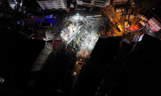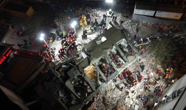 Kocaeli'nin Gebze ilçesinde çöken ve 2 çocuğun cansız bedenine ulaşılan binada, arama-kurtarma çalışmaları 14. saatine girdi. Ekipler, enkaz altındaki anne ve babaya ulaşmak için çalışmalarını sürdürürken yapılan çalışmalar havadan dronla görüntülendi.Mevlana Mahallesi Issıkgöl Caddesi'nde altında eczane bulunan bina, saat 07.00 sıralarında bilinmeyen bir nedenle çöktü. Binada kiracı olarak ikamet eden 5 kişilik Bilir ailesi enkaz altında kaldı. Toplam 627 personelin katılımıyla yürütülen arama-kurtarma çalışmaları kapsamında, gündüz saatlerinde aileden Muhammed Emir (12) ve Nisa'nın (14) cansız bedenlerine ulaşıldı. Ailenin büyük kızı Dilara (18) ise enkazdan sağ olarak kurtarıldı. Çalışmaların 14. saatine girilirken, ekiplerin enkaz altında kalan baba Levent (44) ve anne Emine Bilir'e (37) ulaşmak için yürüttüğü operasyon devam ediyor. Akşam saatlerinde ekiplerin arama-kurtarma çalışmaları havadan dronla görüntülendi.