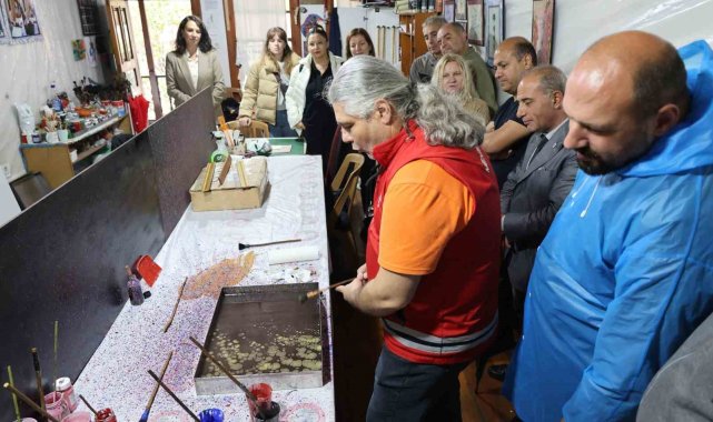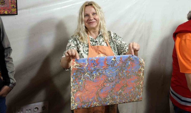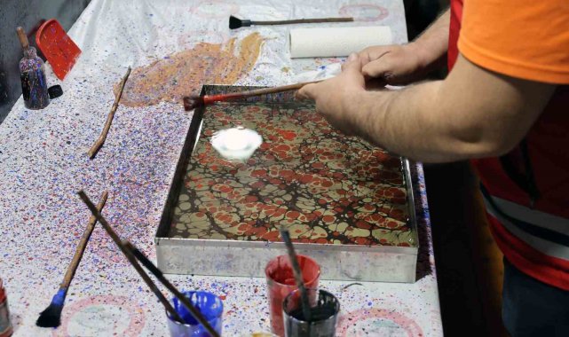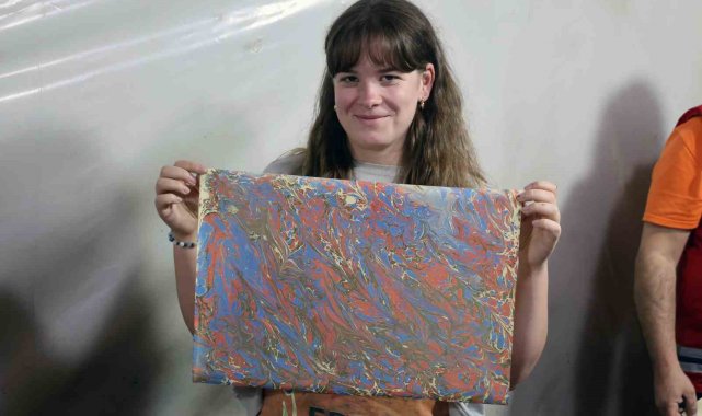Erasmus projesi ortakları Menteşe'de geleneksel ebru deneyimi yaşadı