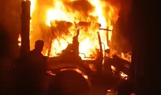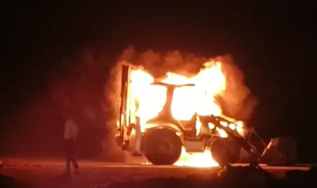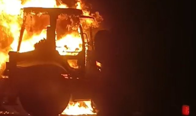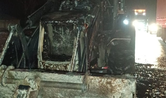 Van'ın Erciş ilçesinde seyir halinde iken alev alev yanan iş makinesi itfaiye ekipleri tarafından söndürülürken, iş makinesinden geriye hurda yığını kaldı.Edinilen bilgiye göre yangın, akşam saatlerinde ilçeye bağlı Yeşilova Mahallesi NATO yolu üzerinde meydana geldi. Yol yapım şantiyesine ait bir iş makinesi seyir halinde iken yanmaya başladı. Durumu fark eden operatör itfaiye ekiplerine haber verdi. Kısa sürede olay yerine giden Erciş İtfaiye Grup Amirliği ekipleri, yanan iş makinesine müdahale etti. Yaklaşık yarım saatlik müdahale sonucu yangın söndürülürken, iş makinesinden geriye hurda yığını kaldı.