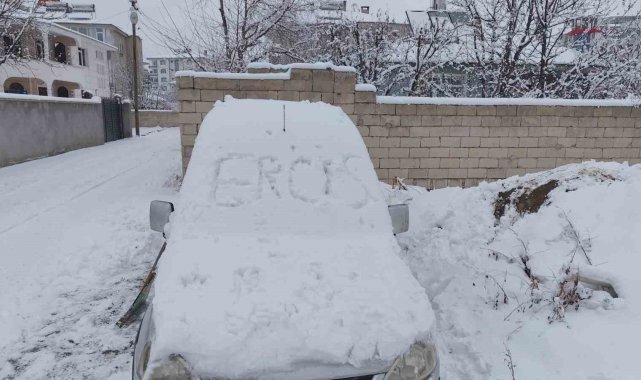 Van'ın Erciş ilçesinde etkili olan kar yağışı ile birlikte kent yeniden beyaza büründü.Meteoroloji Genel Müdürlüğü'nün uyarısının ardından kar yağışı şehri beyaza bürüdü. Gece başlayan kar yağışı gün içinde saatlerinde aralıklarla devam etti. Kar kalınlığı şehir merkezinde 10-15 santimetreyi bulurken, yüksek kesimlerde yarım metreyi buldu. Gün için yağan kardan dolayı vatandaşlar evlerinin önünde biriken karları temizlerken aynı zamanda kar yağışından dolayı araçların üzerinde biriken karları temizlediler.Tatili fırsat bilen çocuklar ise kar yağışını eğlenceye çevirdi. Karın yağmasını fırsat bilen çocuklar kartopu oynadı, kardan adam yapıp gönüllerince doyasıya eğlendi.