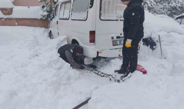 Van'ın Erciş ilçesinde devam eden yoğun kar yağışı felç etti.Meteoroloji'nin uyarıları sonra Erciş'te 3 gündür aralıklarla devam eden kar yağışı hayatı olumsuz etkiledi. Tamamen kara gömülen Erciş merkezde 70 santimetreyi geçen kar kalınlığı, yüksek kesimlerde ise 1 ile 1,5 metreyi buldu. Birçok köy ve mahalle yolunun kapandığı Erciş'te eğitim öğretime de ara verildi.Yoğun kar yağışının olduğu ilçede sabah uyanan vatandaşlar, kara gömülü olan araçlarını çıkarmak ve araçların bulunduğu yeri temizlemek zorunda kaldı. Araçları yollarda kalan sürücülerin imdadına ise yaya olarak yürüyen vatandaşlar yetişti. Araçlarını temizlemekte zorlanan vatandaşlar ise işlerine geç gitmek zorunda kaldı.Tatili fırsat bilen çocuklar ise kar yağışını eğlenceye çevirdi.
