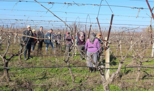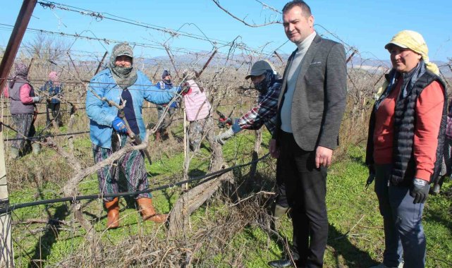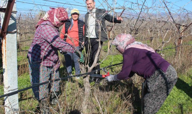 Erkeklerin işi olarak bilinen bağ budama işine kadın eli değdi