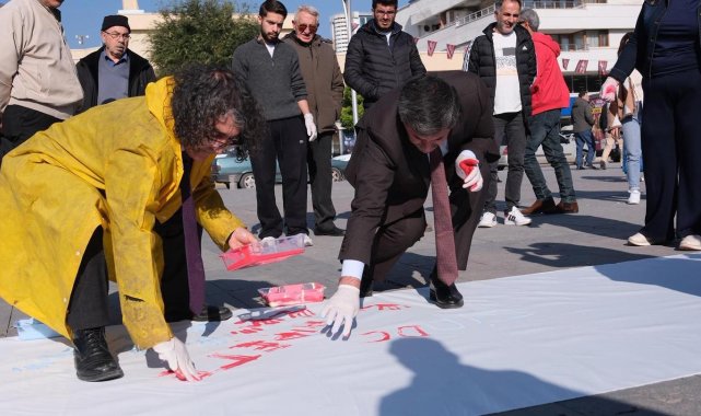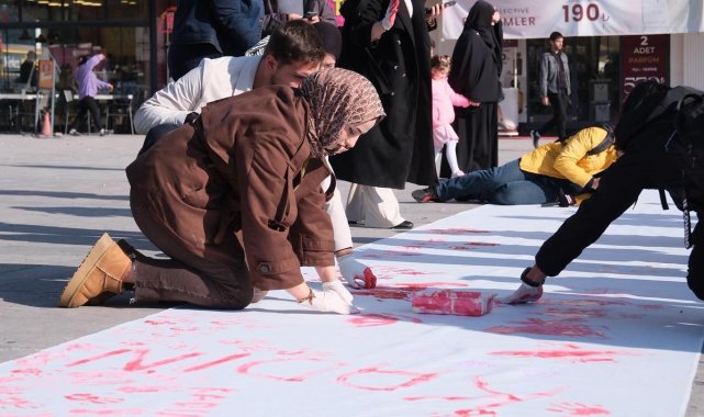 Erzincan'da 50 metre uzunluğundaki bez üzerine el izleriyle "Şiddete Hayır" mesajı verildi; etkinlik geniş katılımla farkındalık oluşturdu. Prof. Dr. Mehmet Kavukçu'nun performansı ve vatandaşların el izleriyle destek verdiği etkinlik, şiddetsiz bir toplum için güçlü bir çağrı yaptı.Erzincan Dörtyol'da Prof. Dr. Mehmet Kavukçu tarafından gerçekleştirilen performans, öğrencilerden akademisyenlere ve vatandaşlara kadar geniş bir katılım sağlayarak şiddete karşı güçlü bir farkındalık oluşturdu.Şiddetin her türüne dikkat çekmek amacıyla düzenlenen etkinliğe Belediye Başkanı Bekir Aksun, Milliyetçi Hareket Partisi İl Başkanı Bilgehan Çağrı Özarslan, öğrenciler ve çok sayıda vatandaş katıldı. Ünlü performans sanatçısı Prof. Dr. Mehmet Kavukçu, "Şiddete Hayır" temalı çalışmasını meydanda sergileyerek katılımcıları farkındalık sürecine dâhil etti.Etkinliğin merkezinde yer alan 50 metre uzunluğundaki beyaz bez, katılımcıların el izleriyle renklendi. Belediye Başkanı Bekir Aksun ve Prof. Dr. Mehmet Kavukçu, renkli boyalara batırdıkları elleriyle beze "Şiddete Hayır" yazdı. Ardından öğrenciler, kadınlar, çocuklar ve yaşlılar sırayla beze el izlerini bırakarak etkinliğe destek verdi. Kısa sürede rengârenk izlerle dolan bez, toplumun ortak tavrını sembolik olarak ortaya koydu.Performansla ilgili değerlendirmelerde bulunan Prof. Dr. Mehmet Kavukçu, 24 Kasım'da düzenlenecek kadın ve aile temalı sempozyuma da dikkat çekerek şunları söyledi:"Bugün çocukların, öğrencilerin ve halkın katılımıyla önemli bir farkındalık oluşturuyoruz. Kadın ve aile üzerinden korunmanın gerekliliğine dikkat çekmek istiyoruz. Şiddete tümüyle hayır; her yönüyle şiddete hayır. Doğadaki her şey bize emanettir ve toplumsal bir duruş sergileyerek bunu korumalıyız."Başkan Aksun: "Şiddetin her türlüsüne karşıyız"Belediye Başkanı Bekir Aksun, etkinlikte yaptığı konuşmada toplumsal bilinç oluşturmanın önemine vurgu yaptı:"Mehmet Kavukçu hocamıza bu anlamlı çalışmadan dolayı teşekkür ediyorum. Bugün burada, şiddetin insan hayatında hiçbir yerinin olmadığını göstermek için bir araya geldik. Kadın-erkek ayırmadan, aile içinde ve toplumda her türlü şiddetin karşısındayız. Hep birlikte el izlerimizi bırakarak güçlü bir mesaj verdik."Aksun, etkinliğe katılan tüm vatandaşlara teşekkür ederek farkındalık çalışmalarının devam edeceğini belirtti.Etkinlik sonunda 50 metrelik bez, onlarca el iziyle adeta bir toplumsal tepki duvarına dönüştü. Hem sanatsal hem de sembolik yönüyle öne çıkan çalışma, şiddetsiz bir toplum için ortak iradeyi güçlü bir şekilde yansıttı.