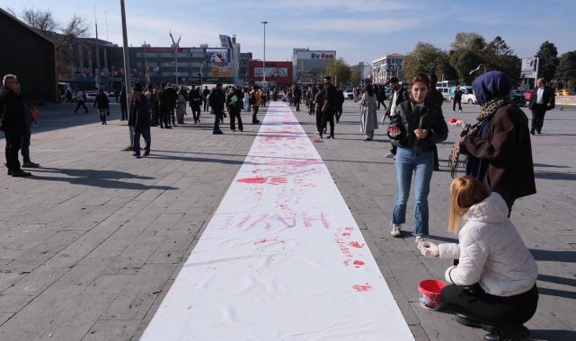 Erzincan'da 50 metre uzunluğundaki bez üzerine el izleriyle "Şiddete Hayır" mesajı verildi; etkinlik geniş katılımla farkındalık oluşturdu. Prof. Dr. Mehmet Kavukçu'nun performansı ve vatandaşların el izleriyle destek verdiği etkinlik, şiddetsiz bir toplum için güçlü bir çağrı yaptı.