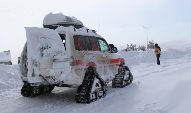 Erzincan'da karlı dağları aşan paletli ambulanslar hastaların derdine derman oluyor