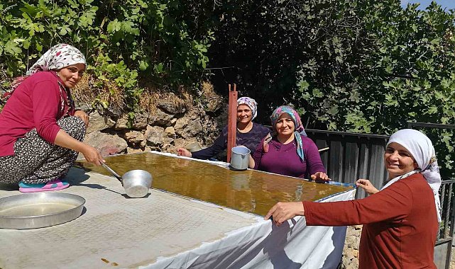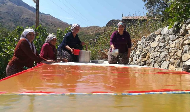 Erzincan'da kadınlar, dutların olgunlaşmasıyla geleneksel yöntemlerle pestil üretimine başladı.