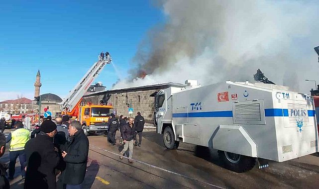 Erzurum'da içinde restorasyon çalışmaları yapılan, yaklaşık 160 yıllık Taş Ambarlar'ın çatısında çıkan yangın kontrol altına alındı.