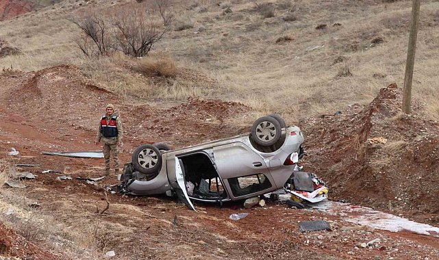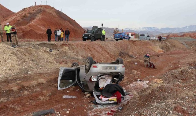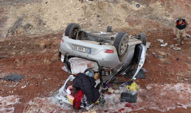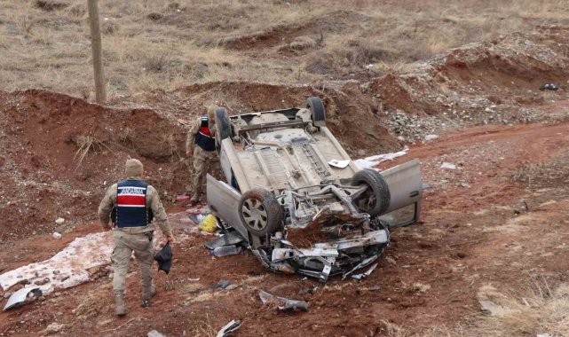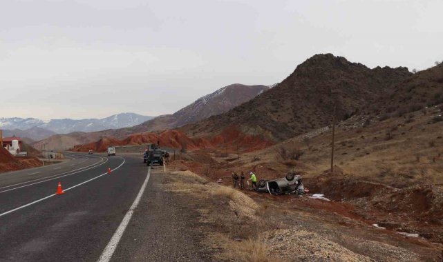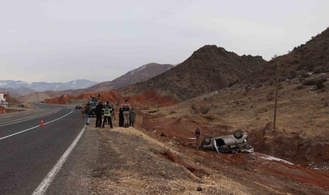 Erzurum'da meydana gelen kazada otomobil şarampole yuvarlandı, iki kişi yaralandı.