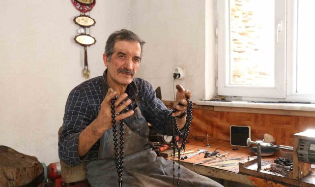 Erzurum'un Oltu ilçesinde yaşayan tespih ustası Halis Aydın, 45 yıldır Oltu taşı tespihlerini büyük bir ustalıkla işliyor.Oltu ilçesine bağlı Yasin Haşimoğlu Mahallesi'nde ikamet eden 63 yaşındaki Halis Aydın, ilkokul eğitimini tamamladıktan sonra aile büyüklerinden öğrendiği tespih ustalığını yıllardır severek sürdürüyor. Yaklaşık 45 yıldır Oltu taşı tespihi yapan Aydın, mesleğini evinin bahçesinde kurduğu mini atölyede yaşatıyor.Sabahın erken saatlerinde tezgâhının başına geçen Aydın, akşam ezanına kadar çalışarak günde ortalama 5 ila 7 adet tespih üretiyor. Maharetli ellerinden çıkan el emeği göz nuru tespihler, vatandaşlar tarafından büyük beğeni topluyor.Genellikle sipariş üzerine üretim yaptığını belirten Aydın, tespih fiyatlarının büyüklük ve işçiliğine göre 2 bin liradan başlayıp 6 bin liraya kadar çıktığını ifade etti. Tespihlerini sade olarak yapmayı tercih ettiğini söyleyen usta Aydın, fazla işlemenin Oltu taşının doğal değerini kaybettirdiğini dile getirdi.Oltu taşı tespih ustalığını yaşatmaya devam eden Halis Aydın, mesleğini gelecek nesillere aktarmak istediğini de sözlerine ekledi.