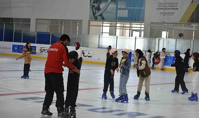 Erzurum Gençlik ve Spor İl Müdürlüğü Yaz Kur'an Kursları'nda Kur'an öğrenen öğrencileri buz pateni ile tanıştırdı.