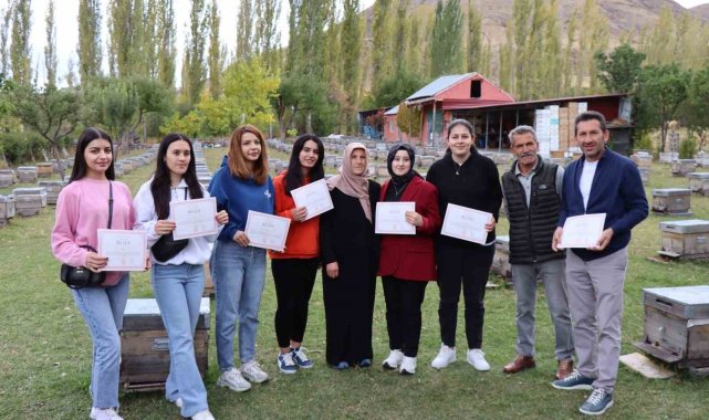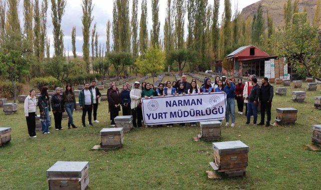 Erzurum'un Narman ilçesinde gençler deneyimli arıcılardan uygulamalı eğitim alarak sertifikalarını almaya hak kazandı.