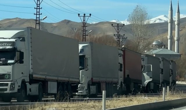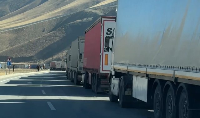 İran tarafında aralıklarla devam eden sistemsel aksaklıklar nedeniyle Hakkari'nin Yüksekova ilçesindeki Esendere Gümrük Kapısı'nda bekleyen tırların oluşturduğu kuyruk yaklaşık 2 kilometreye ulaştı.