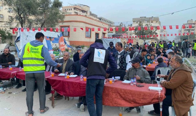 Esenler Belediyesi, geçtiğimiz yıl olduğu gibi bu yıl da savaşın gölgesi altındaki Gazze'de iftar sofraları kurdu. Ramazan ayı boyunca kurulan sofralarda 10 bin Gazzeli, Türk bayrakları altında iftar yapmanın sevincini yaşadı.