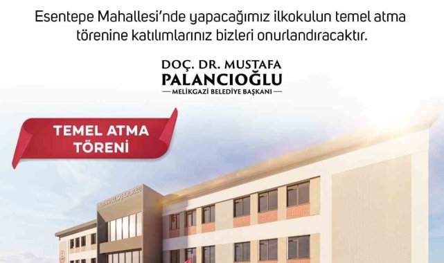 Eğitim hayatına bir yatırımı daha kazandıracak olan Melikgazi Belediyesi; 3 Kasım Pazartesi günü Esentepe Mahallesi'nde Mustafa Ulubaş İlkokulu'nun temel atma törenini gerçekleştirecek.