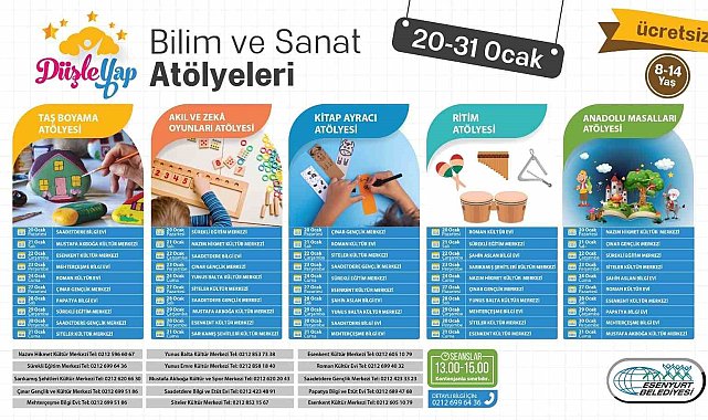 Esenyurt Belediyesi, sömestr tatilinde bilim sanat atölyeleri, spor kursları, tiyatro ve sinema gösterimleri ile birbirinden keyifli aktivitelerin yer aldığı bir dizi etkinlik hazırladı. Çocuklar, zihinsel ve bedensel gelişimlerini destekleyecek bu programda hem gönüllerince eğlenecek hem de yeni eğitim dönemine stressiz bir şekilde başlayacak.
