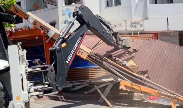 İstanbul Esenyurt'ta zabıta ve market çalışanları arasında bıçaklı kavgaya neden olan manav reyonu kepçeyle yıkıldı. İş yeri sahipleri ile zabıta ekipleri arasında ufak çaplı gerginlik yaşanırken, çevik kuvvet polislerinin müdahalesiyle yıkım tamamlandı.