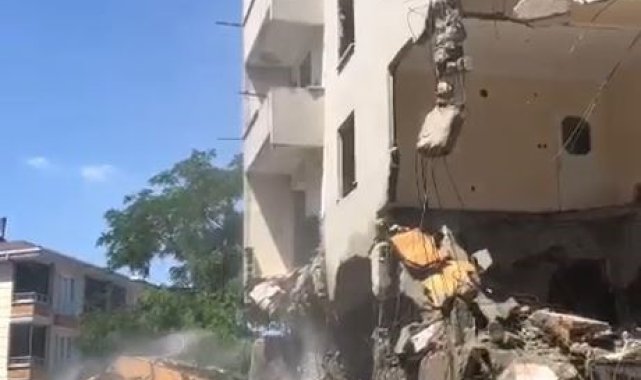 İstanbul'un Esenyurt ilçesinde kentsel dönüşüm dahilinde yıkılan 4 katlı bina, yıkım sırasında yola çöktü. İş makinesi operatörü ve çalışanlar kaçarak binanın altında kalmaktan son anda kurtuldu. Olay anı cep telefonu kamerasına yansırken, şans eseri yaralanan olmadı. Çöken bina da havadan görüntülendi.Olay bugün saat 15.00 sıralarında Esenyurt İnönü Mahallesi 374 Sokak'ta meydana geldi. Edinilen bilgilere göre, kentsel dönüşüm kapsamında yıkım kararı alınarak boşaltılan 4 katlı binanın yıkımına başlandı. İş makinesi binayı yıkmak için çalıştığı sırada, bina bir ana yola doğru çöktü. Yol trafiğe kapatılarak güvenlik önlemi alındı. İş makinesi operatörü ve çalışanlar kaçarak binanın altında kalmaktan son anda kurtuldu. Olay esnasında yoldan kimsenin geçmemesi büyük bir faciayı önlendi. Şans eseri yaralanan olmadı. Çökme anı cep telefonu kamerası ile görüntülendi. Çöken bina da havadan görüntülendi.