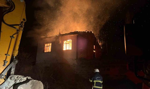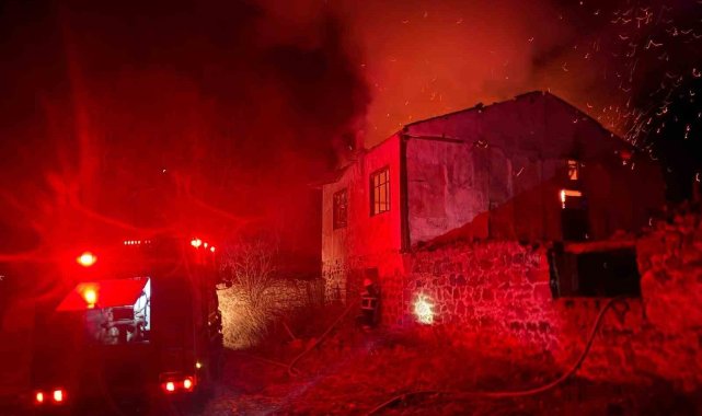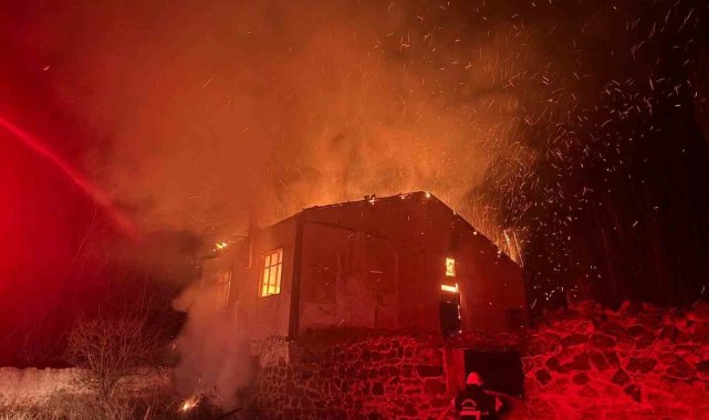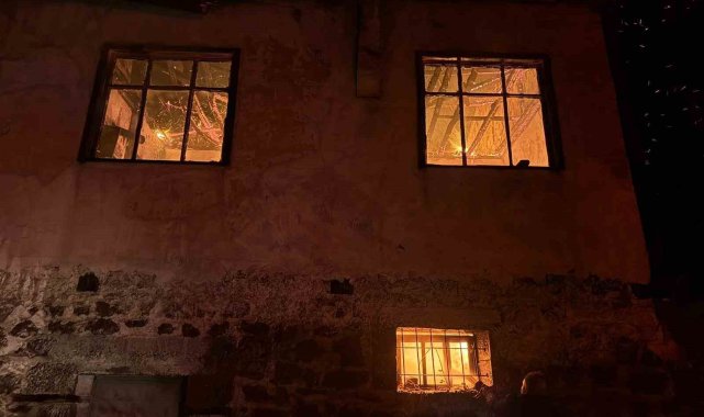 Amasya'nın Merzifon ilçesinde eskiden değirmen olarak kullanılan bina, çıkan yangında alevlere yenik düştü.