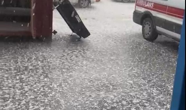 Eskişehir'de aniden bastıran dolu yağışı sokakları beyaza bürüdü, o anlar cep telefonu kamerasına yansıdı.