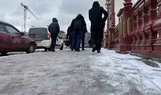 Eskişehir'de kaldırımlar buz pistine döndü